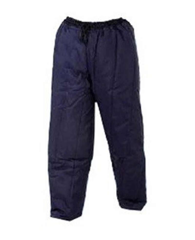 CA 10976: Calça de segurança confeccionada em náilon, tipo pijama, cordão de poliéster na cintura para ajuste, forro em manta acrílica de matelassê.