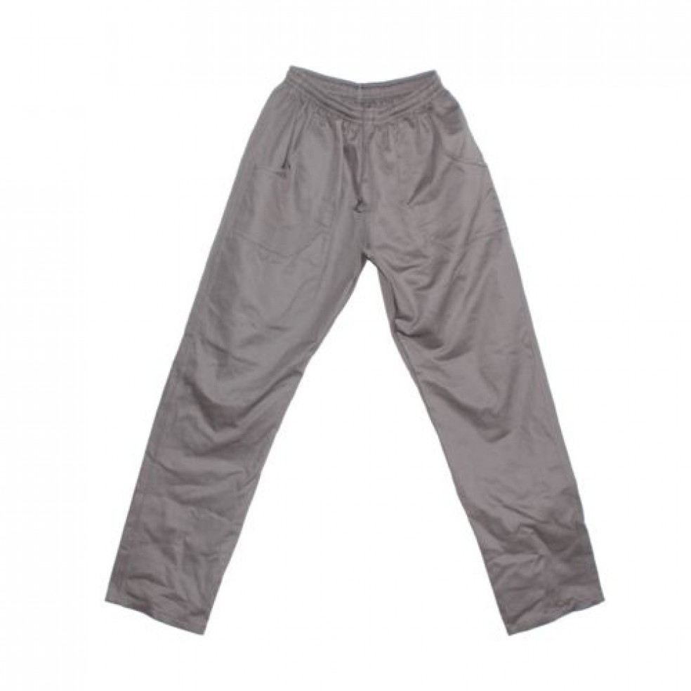 Calça tipo brim, tamanhos P, M, G e EXG.