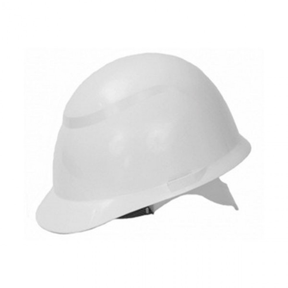 Capacete de Segurança para uso na Indústria, classe B, tipo II (com aba frontal), com carneira fixada ao casco, com regulagem por pino e tira absorvente de suor, com suspensão plástica ou de tecido. Nas cores branca, amarela, azul, verde, rosa, marrom, cinza, preta e vermelha.