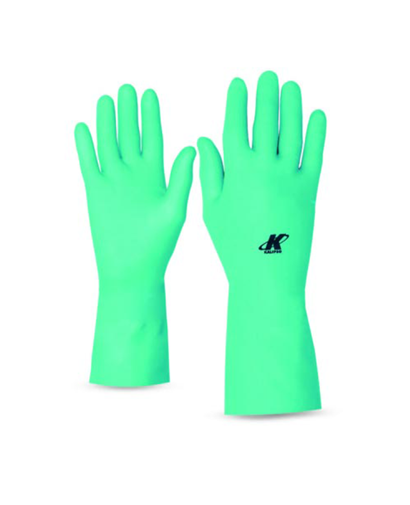 Luva de segurança confeccionada em látex nitrílico, forrada internamente com flocos de algodão, palma antiderrapante.