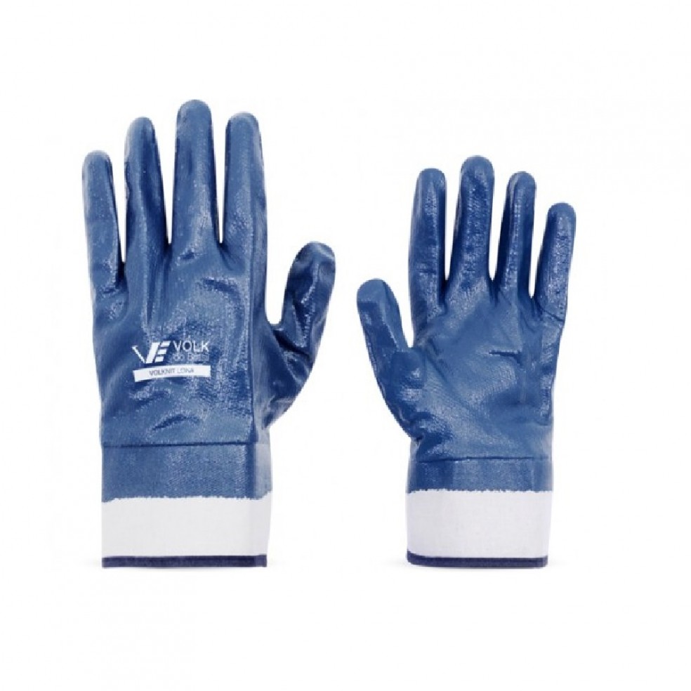Luva de segurança confeccionada em suporte têxtil de algodão, revestida em borracha nitrílica na palma e dorso, punho em lona.
