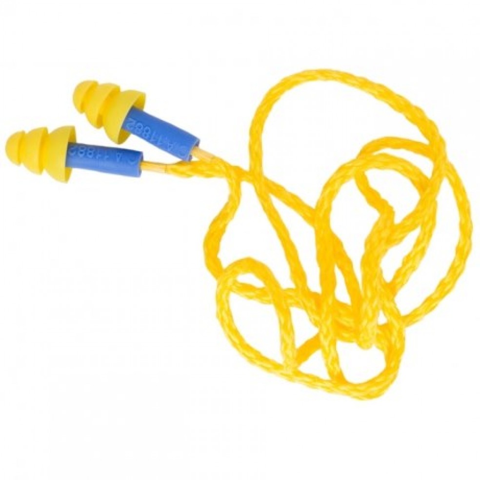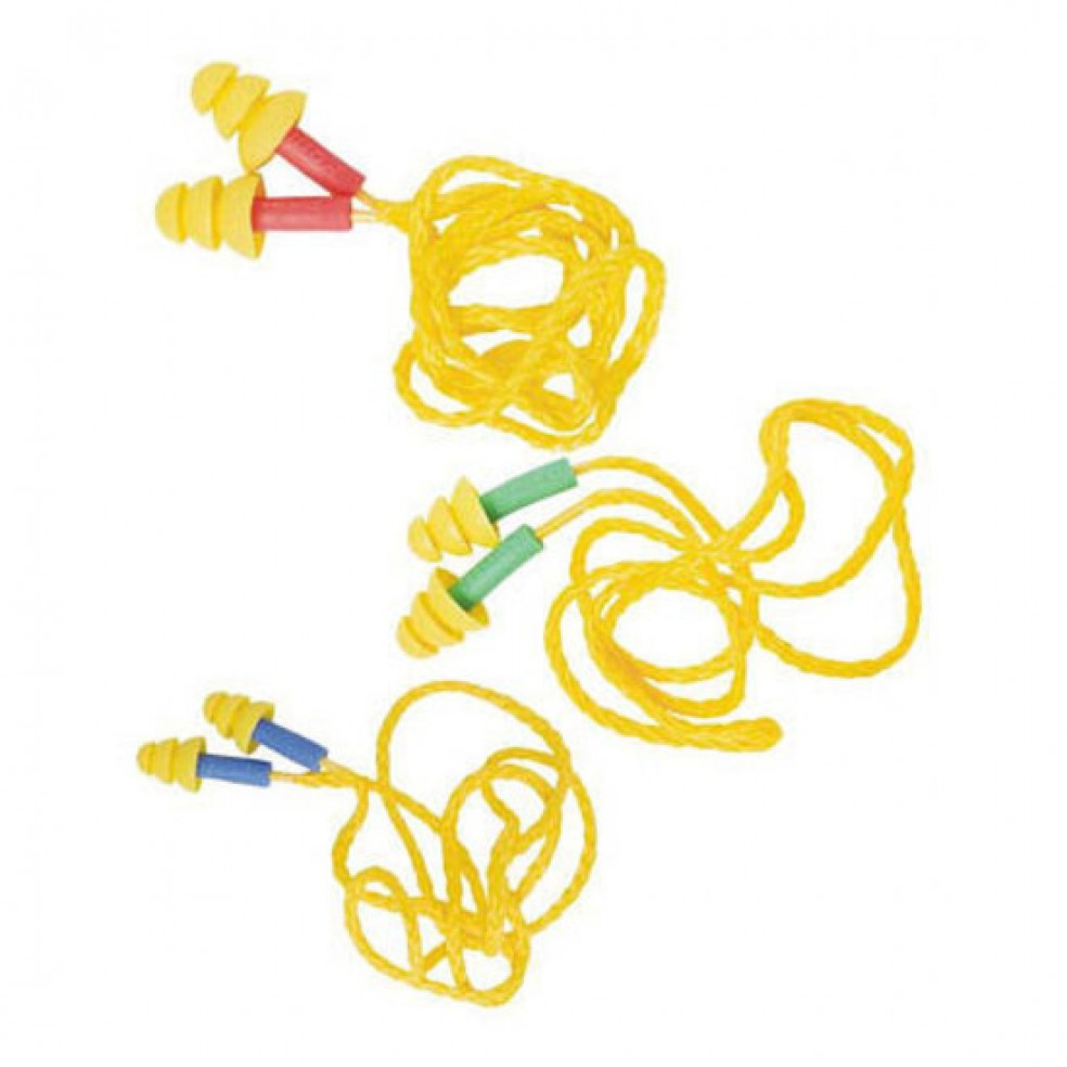 Protetor auditivo do tipo inserção pré-moldado de silicone, três tamanhos, com cordão.